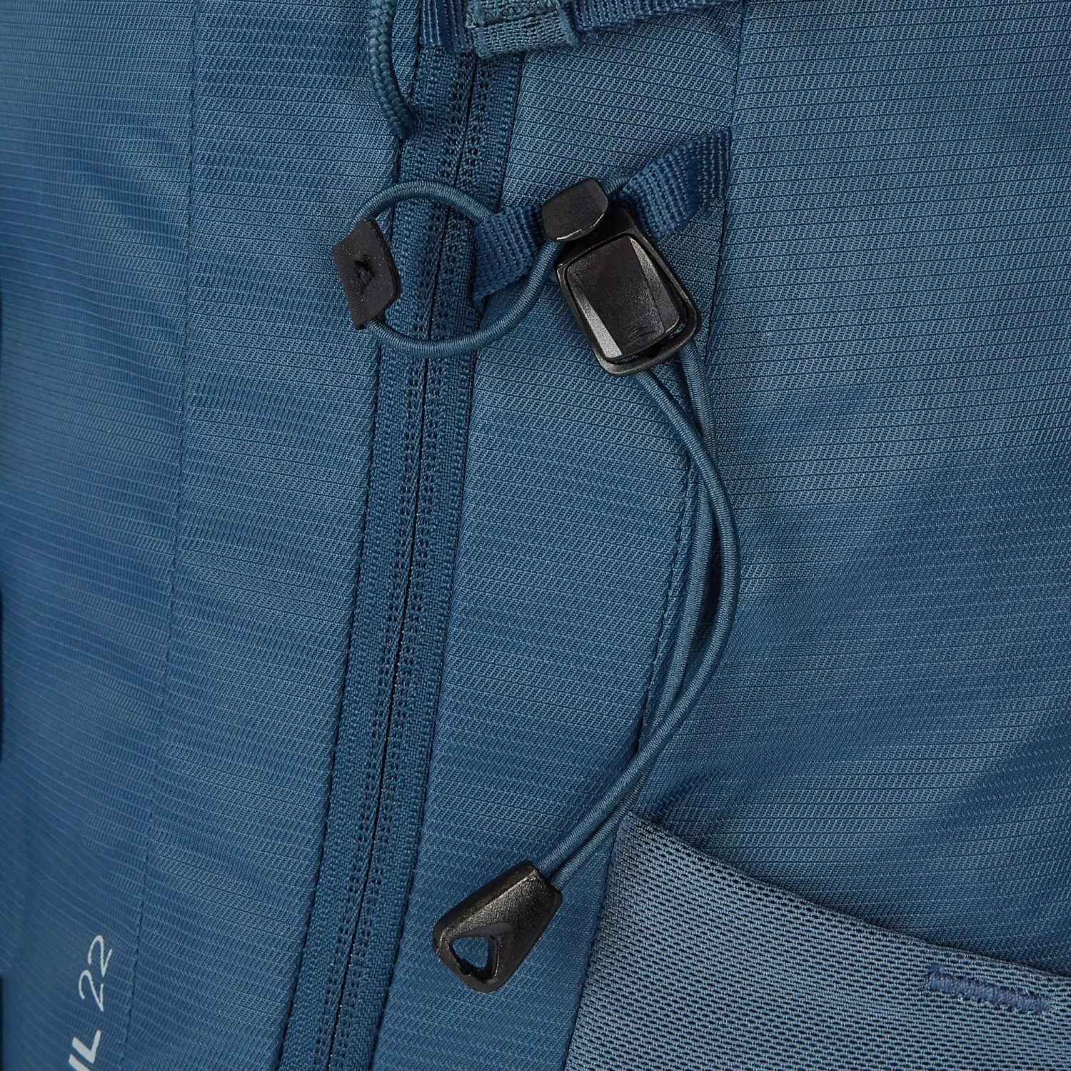 Es gibt eine geräumige Frontöffnung, zahlreiche Fixpunkte, einen verstaubaren Hüftgurt und eine integrierte Regenhülle. Trotzdem trägt der Trail 22 nicht dick auf sondern kommt sportlich-schlank daher.