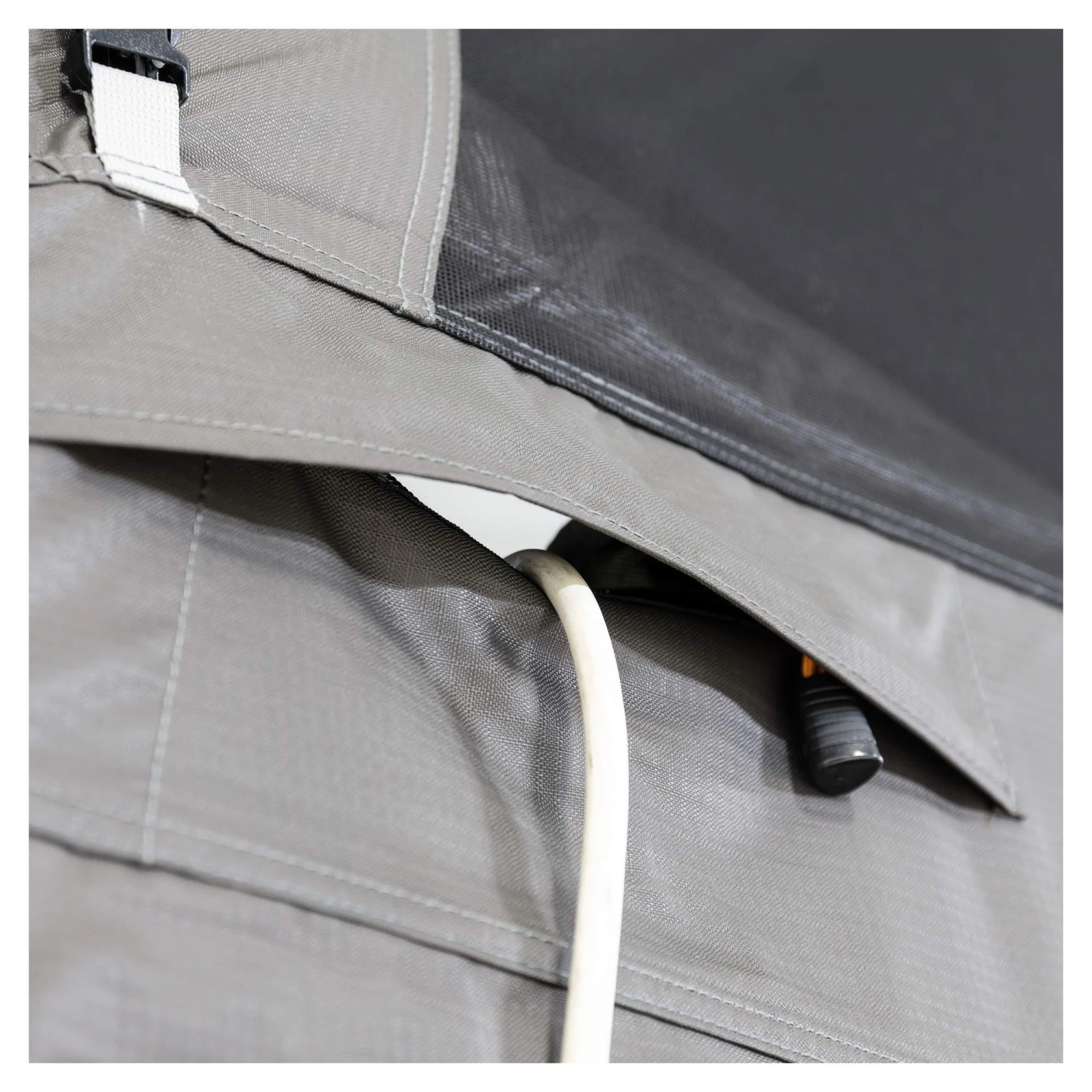Das praktische und klein verpackbare Dachzelt hat aber noch einen weiteren Vorteil, der es vor allem für Nachteulen und Langschläfer:innen zum idealen Zelt macht. Es lässt sich von innen hervorragend abdunkeln! Und wenn wir dunkel sagen, dann meinen wir auch dunkel! Selbst die Messehalle in Düsseldorf samt greller Deckenbeleuchtung konnte „ausgeblendet“ werden! Das kräftige Material schluckt darüber hinaus einiges an Geräuschen, auch wenn du hier nicht zu viel erwarten solltest, denn es ist logischerweise noch immer ein Zelt!