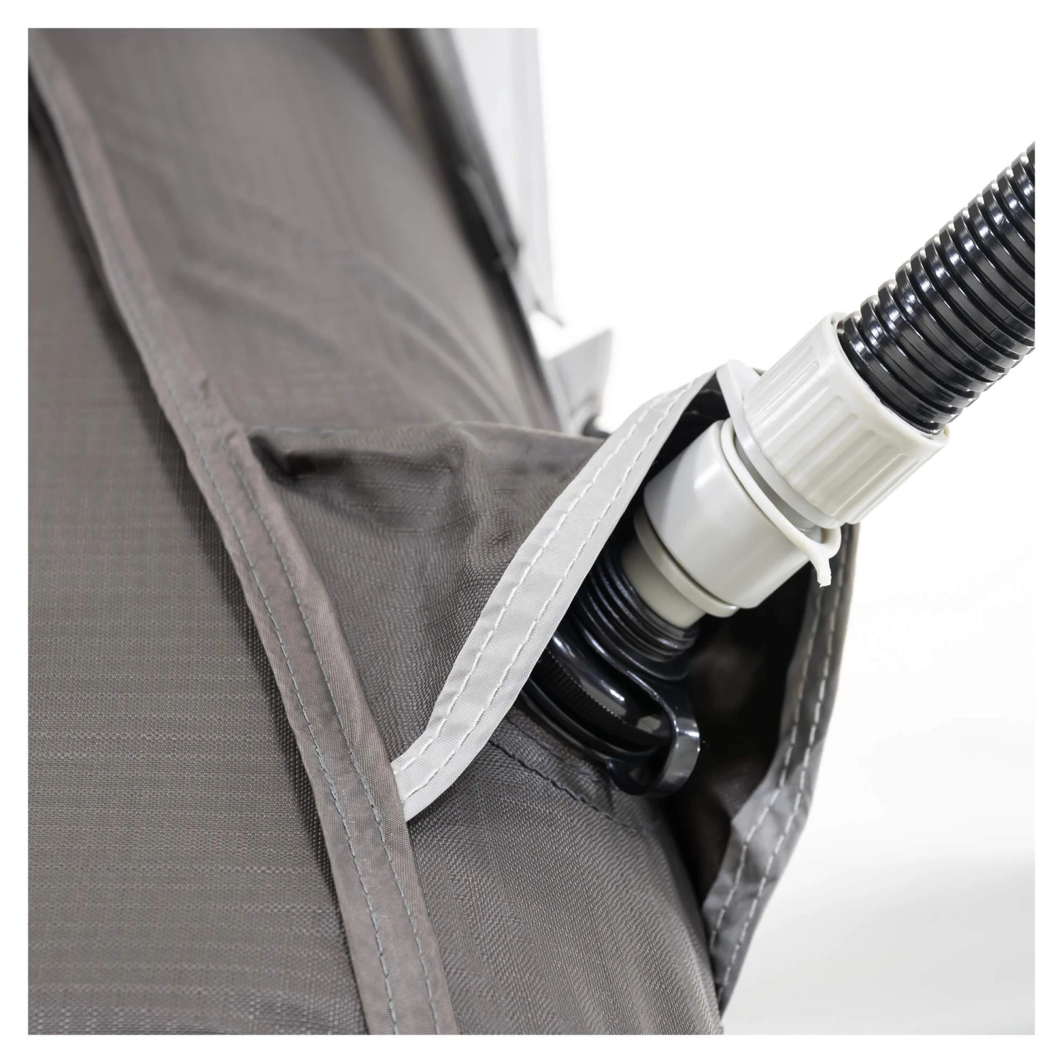 Denn das gute Stück lässt sich dank des innovativen Einpunkt-Aufblassystems und der im Lieferumfang enthaltenen 12V-Punpe im Handumdrehen aufstellen. Ein langer und komplizierter Aufbau gehört damit der Vergangenheit an. Das Risiko, den Urlaub bereits mit schlechter Stimmung zu starten übrigens auch!