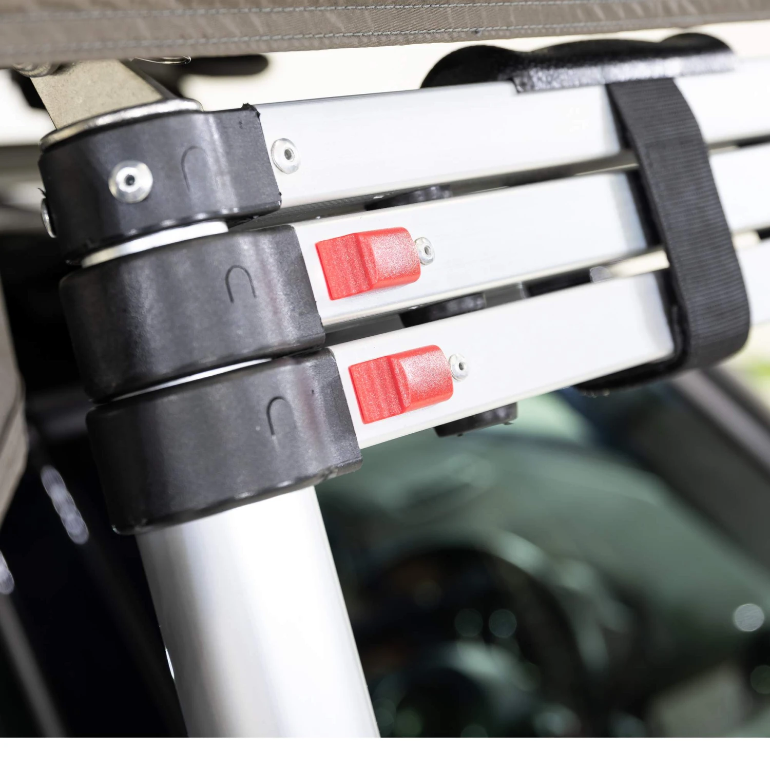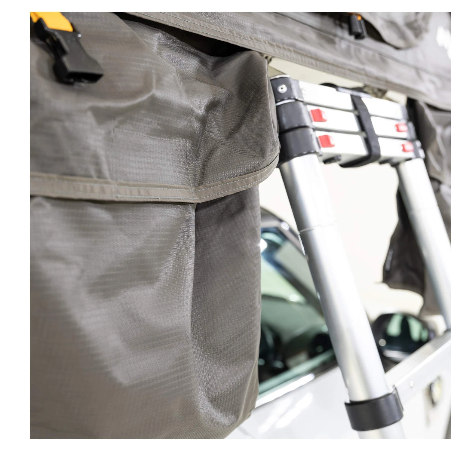 Auffallend sind auch die großflächigen Mesh-Fenster des Dachzeltes. Wenn es also mal richtig warm wird, kannst du es bestens belüften. Je nach Standort kannst du durch sie aber auch die hoffentlich beeindruckende Kulisse auf dich wirken lassen. Das beinahe 360°-Panorama kann einem da morgens schon mal den Atem verschlagen und der Kaffee schmeckt mit beeindruckender Berg- oder Seekulisse doch auch einfach noch mal eine ganze Spur besser!