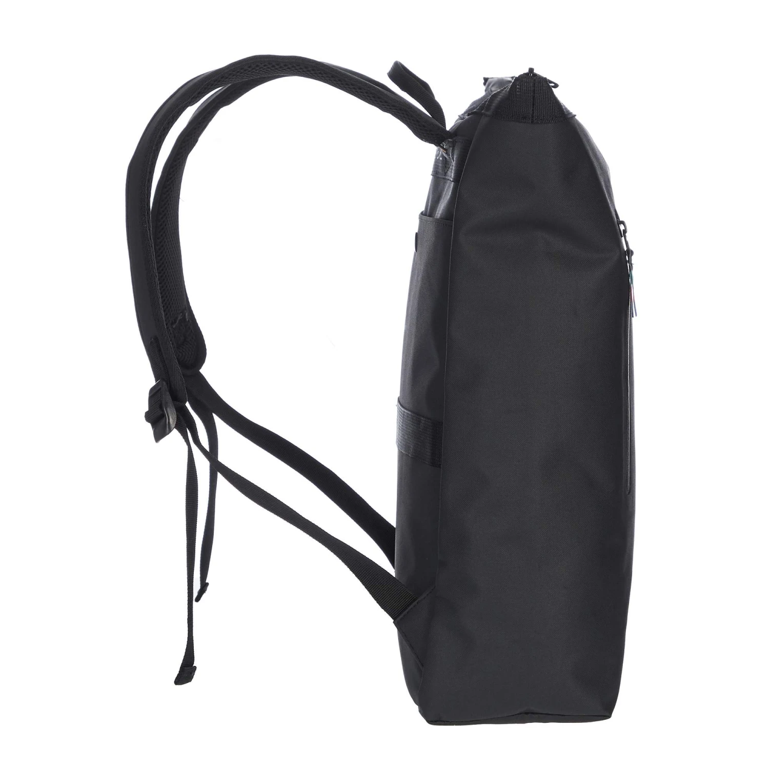 Mit seiner flachen Tütenform wirkt der No!Rolltop schön schlank auf deinem Rücken und stört auch nicht in Bus und Bahn. Im Inneren des Tagesrucksack finden nicht nur deine Sport- oder Unisachen Platz, denn der Rucksack hat ein gepolstertes 15″-Laptopfach mit an Bord.