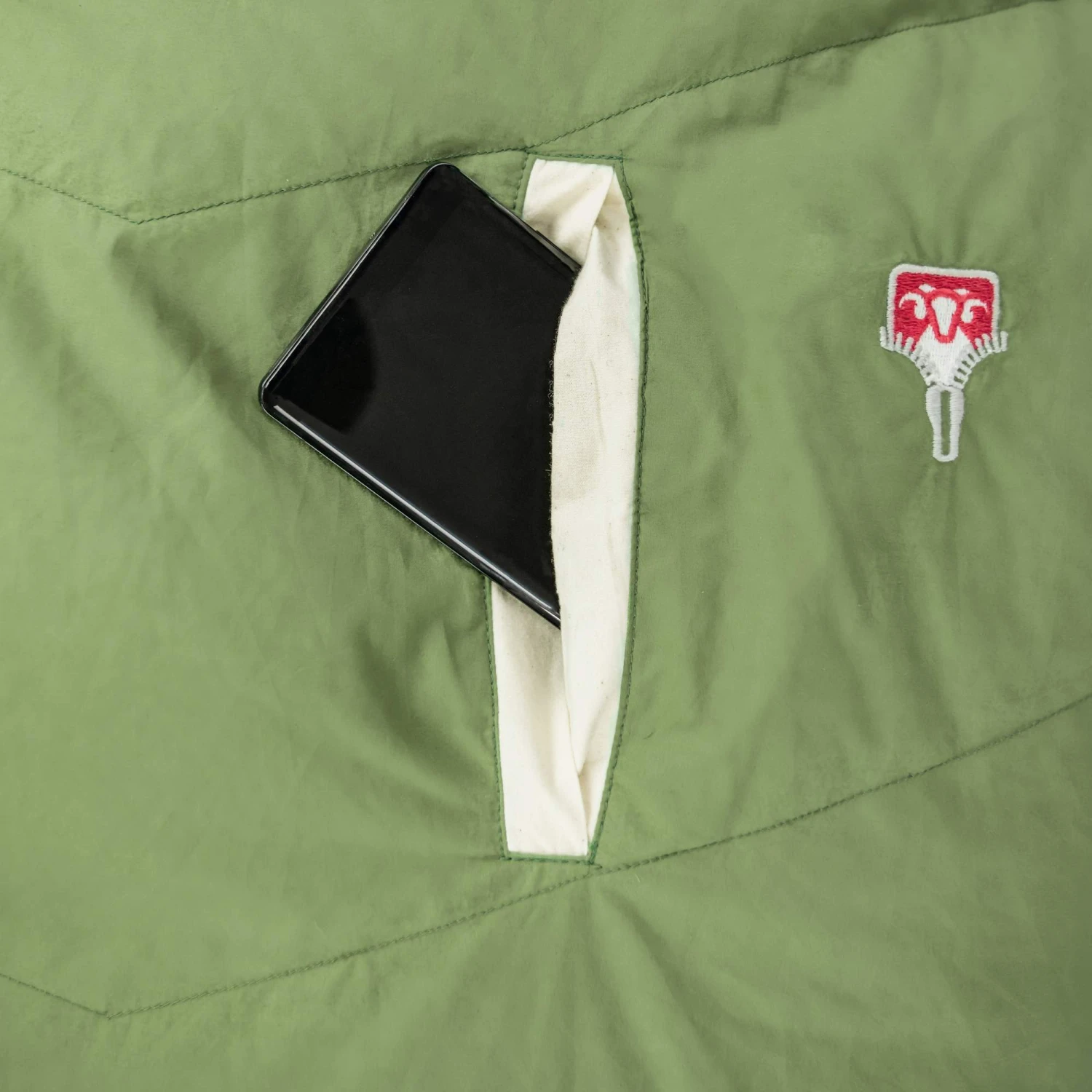 Praktisch: Ein Einschubfach in der Kapuze erlaut das Kissen rutschsicher unterzubringen oder einen Wollpullover einzuschieben, um ihn als Kopfkissen nutzen zu können.