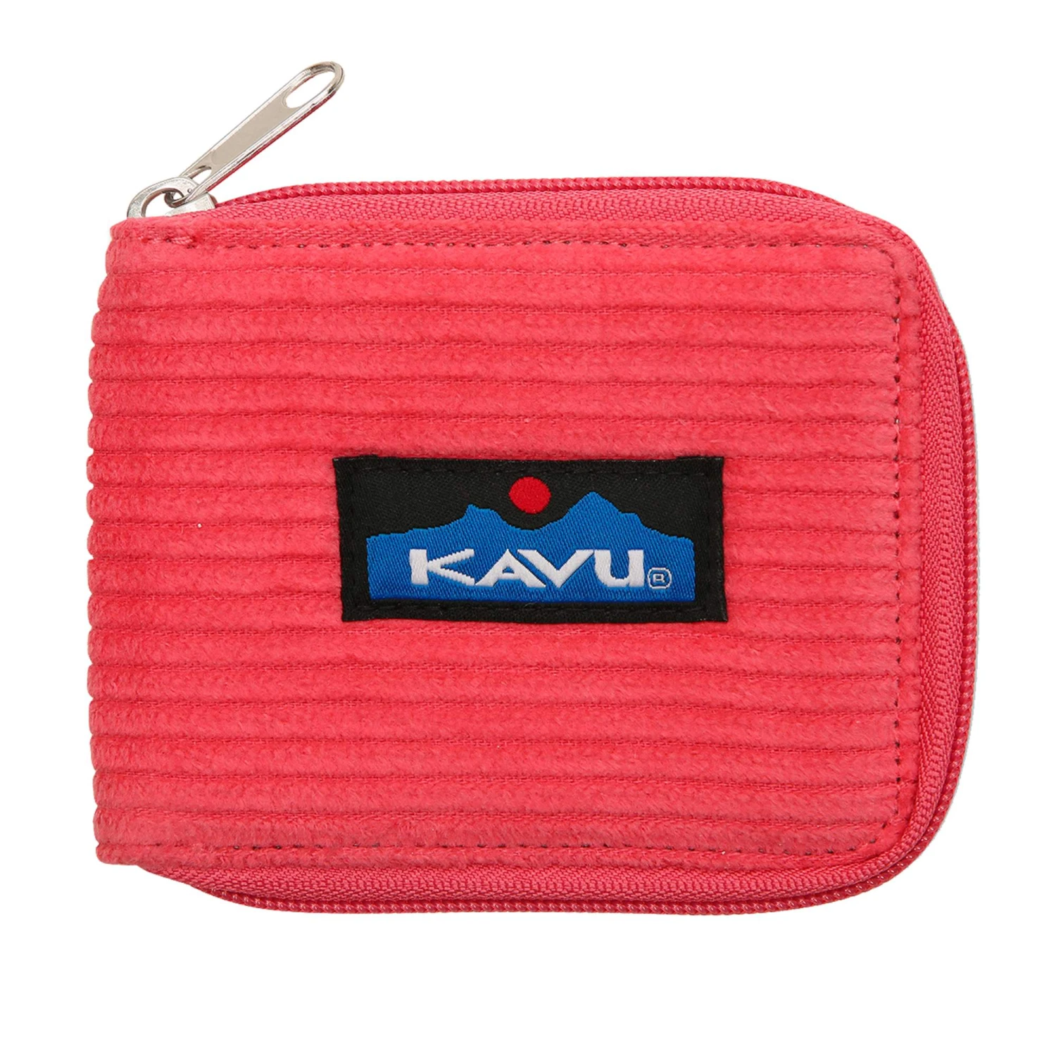 Das kleine Portmonee für Reise und Alltag besteht aus robustem, breit gestreiften Baumwollcord. Die Farben sind herrlich leuchtend und auf der Front ist das Kavu-Berglogo aufgenäht.