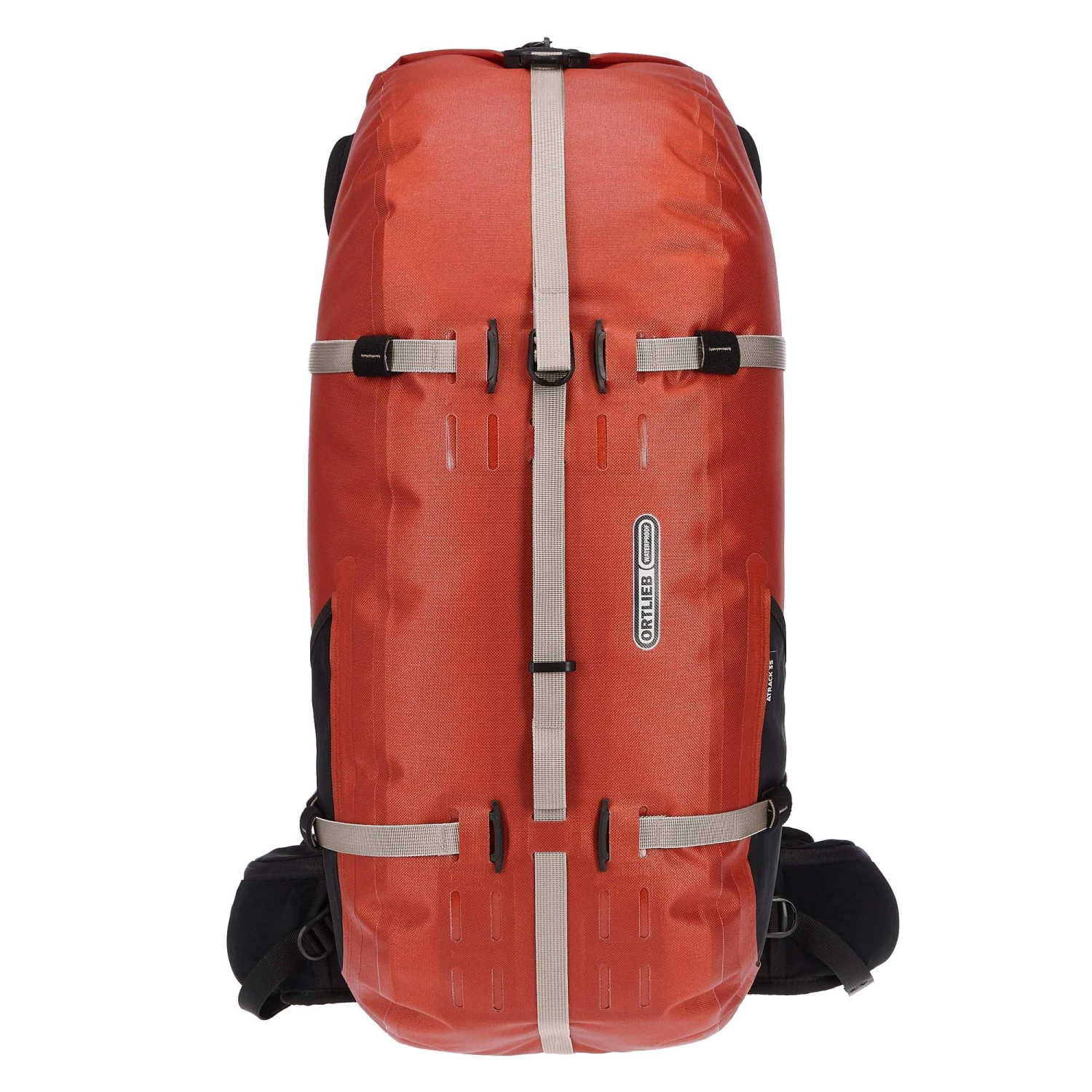 Ortliebs Spezialität sind wasserdichte Packlösungen. So ist auch der Atrack 25L wasser- und staubdicht nach IP67. Um die Wasserdichtigkeit zu gewährleisten, musst du den Reißverschluss natürlich komplett schließen. Der Atrack 25L hat ein modulares Design. Das heißt, du kannst ihn mit separat erhältlichem Zubehör individuell ergänzen und so z. B. eine Helmhalterung oder ein Trinksystem anfügen (nicht im Lieferumfang enthalten).