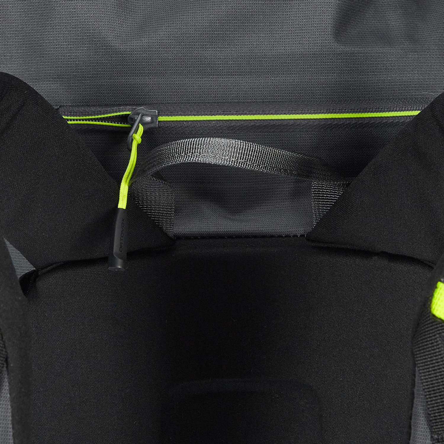Das abriebfeste Material des Trad 22 Dry hat eine Wassersäule von 50.000 mm und seine Nähte sind Hochfrequenz verschweißt. Die RV schützen vor Sprühwasser (Schutzklasse IPX3). Der Rollverschluss schottet das Regenwasser zuverlässig vom Hauptfach ab und er ist so positioniert, dass du auch mit Helm nicht gegen ihn stößt.