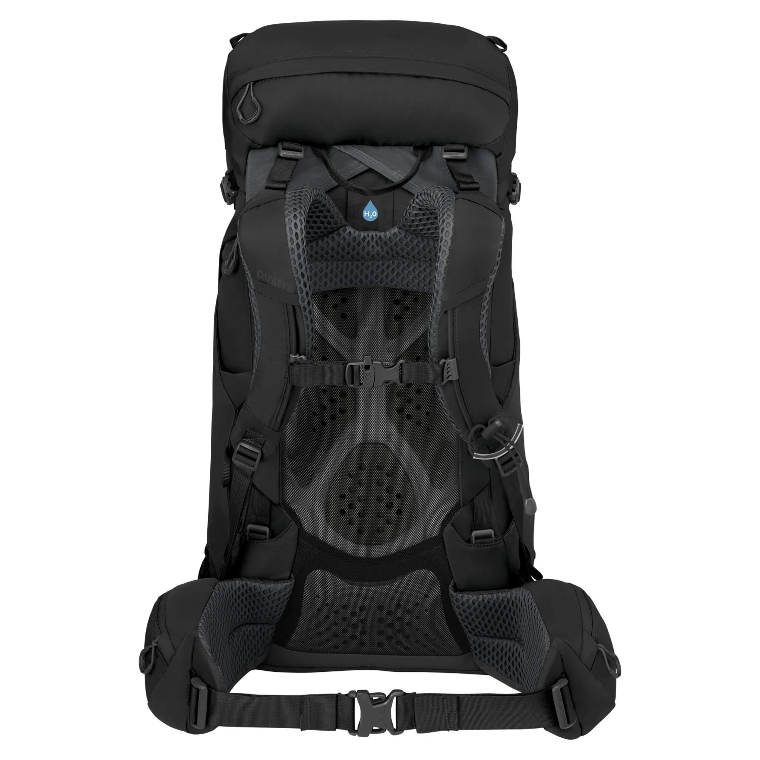 Das neue Airscape-Tragesystem besteht aus einem Kontaktrücken mit leichtem Rahmen und Rückenplatte. Das Rucksackgewicht wird über den Rahmen gleichmäßig auf die Hüfte umgeleitet. Strategisch platzierte, perforierte Schaumstoffpolster schaffen atmungsaktive und bequeme Auflageflächen. Im Lumbalbereich kommt ein größeres, ergonomisch vorgeformtes Polster zum Einsatz.