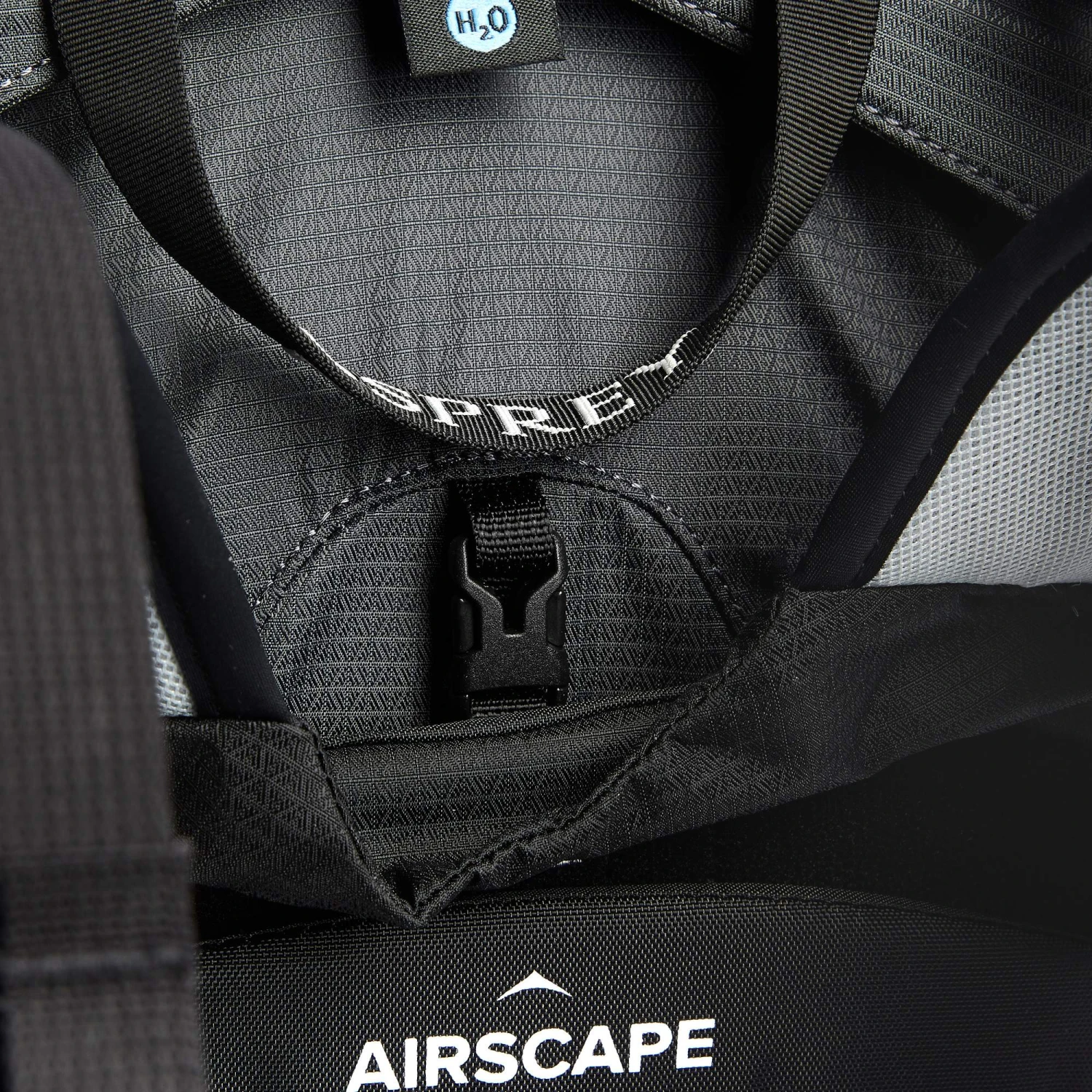 Die Talon/Tempest-Reihe wurde von Osprey mit dem modernen AirScape-Rückensystem ausgestattet. Die feste HDPE-Rückenplatte ist spritzgegossen und bleibt auch bei hoher Traglast verwindungssteif. Dabei passt sich das Material immer noch dem Rücken an. Der Meshbezug sorgt für eine sehr gute Belüftung des Rückens.