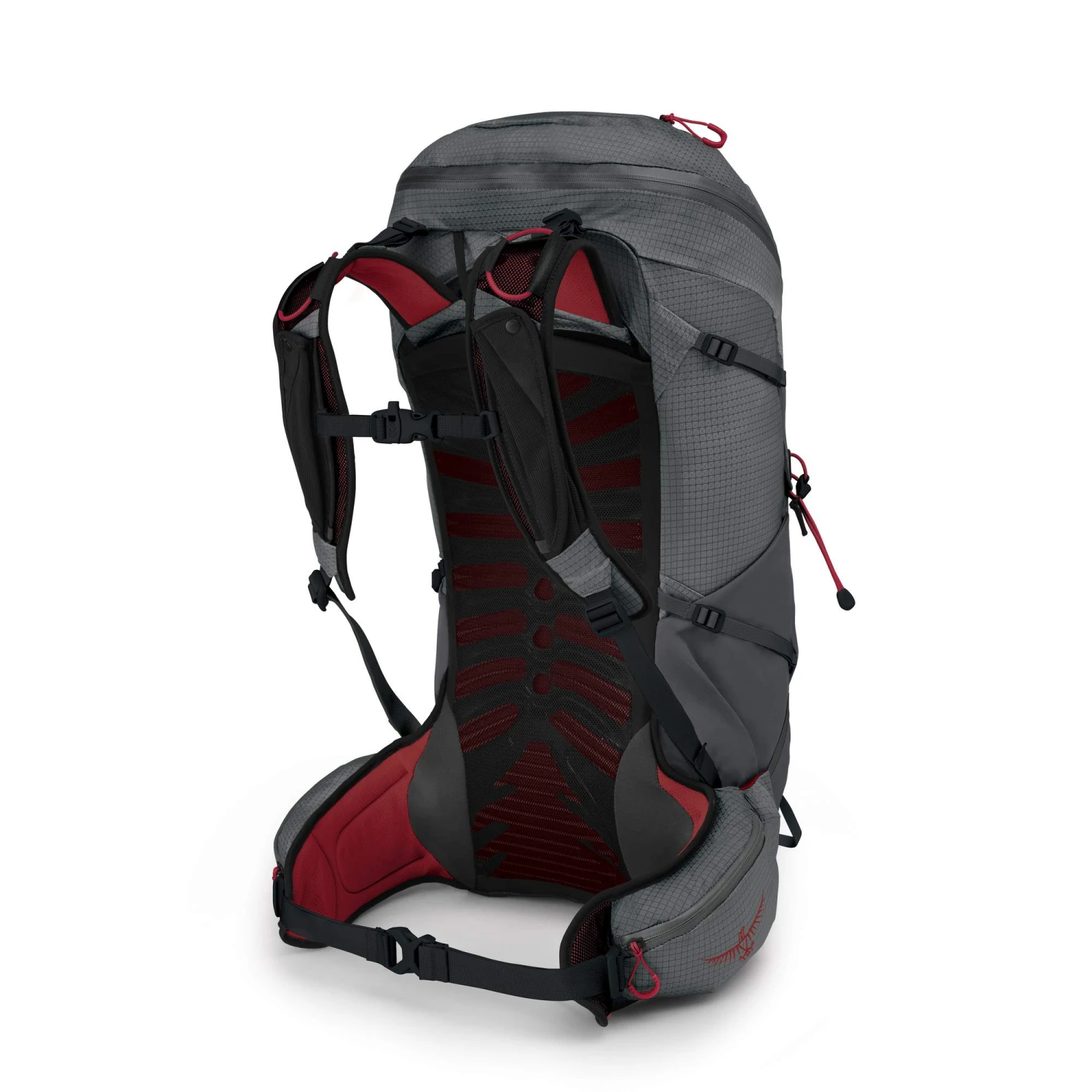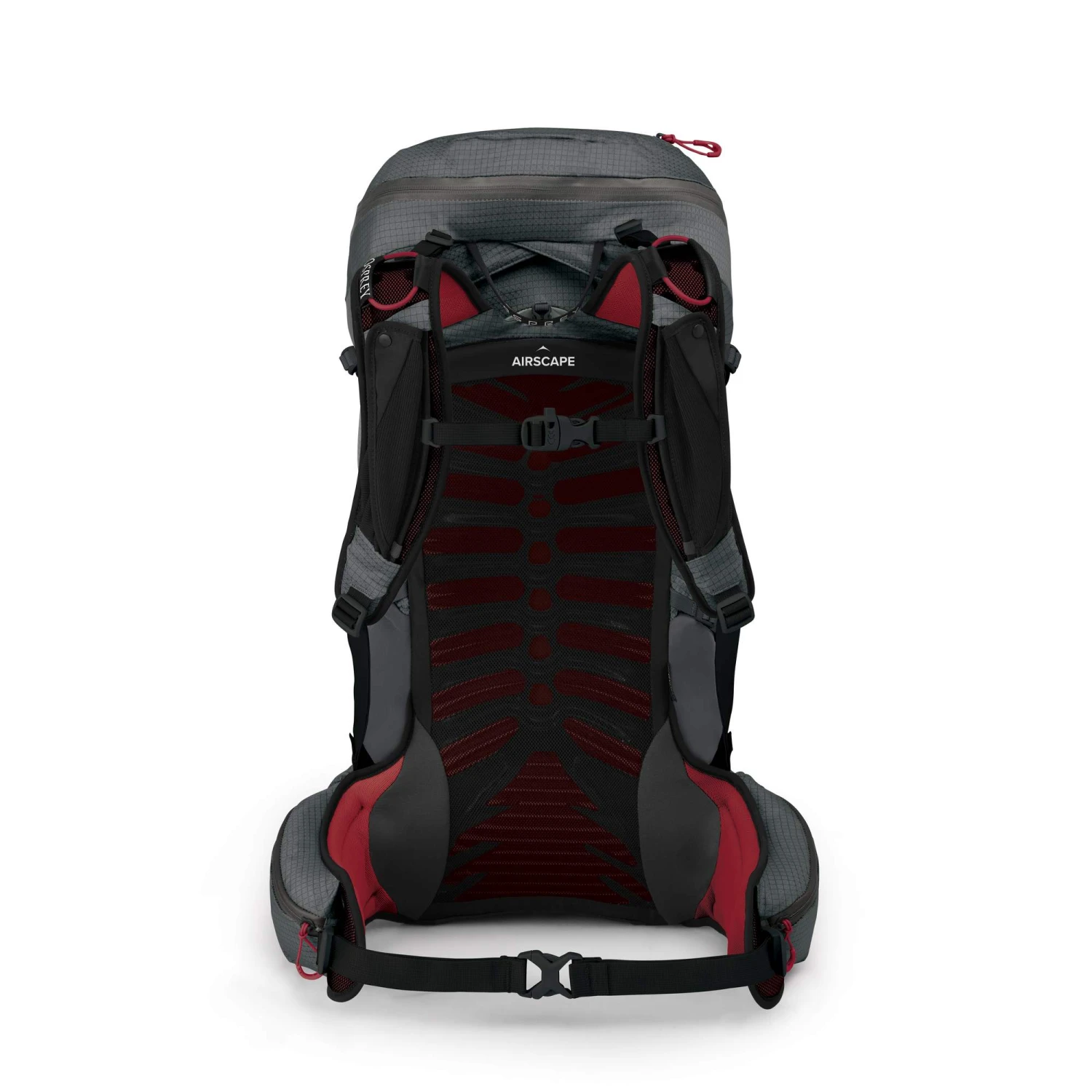 Beim Talon Pro 30 kommt Ospreys neues AirScape-Rückensystem in leicht abgewandelter Form zum Einsatz. Die spritzgegossene HDPE-Rückenplatte ist verwindungssteif, aber leichter und etwas biegsamer als beim klassischen Tempest. Dadurch passt sie sich sehr gut an deinen Rücken an. Ein Meshbezug sorgt für eine sehr gute Belüftung. Den Talon Pro gibt es in zwei Rückenlängen, die jeweils noch verstellbar sind.