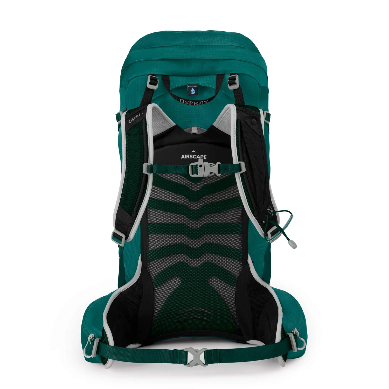 Die Talon/Tempest-Reihe wurde von Osprey mit dem modernen AirScape-Rückensystem ausgestattet. Die feste HDPE-Rückenplatte ist spritzgegossen und bleibt auch bei hoher Traglast verwindungssteif. Dabei passt sich das Material immer noch dem Rücken an. Der Meshbezug sorgt für eine sehr gute Belüftung des Rückens.