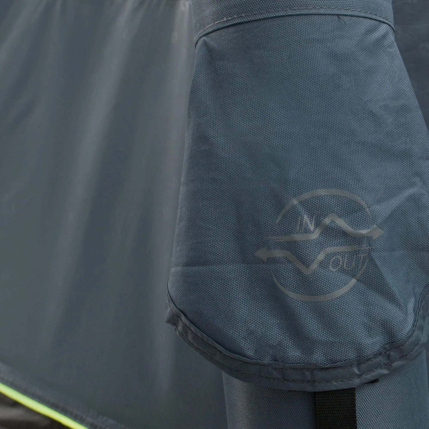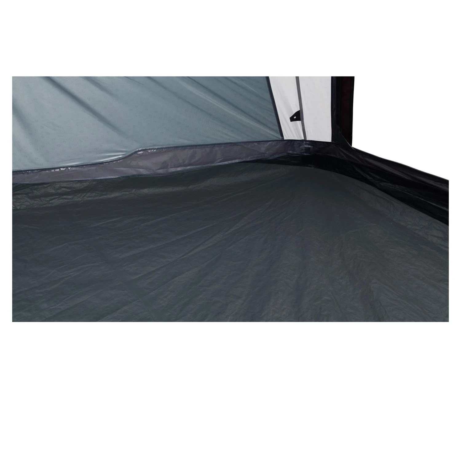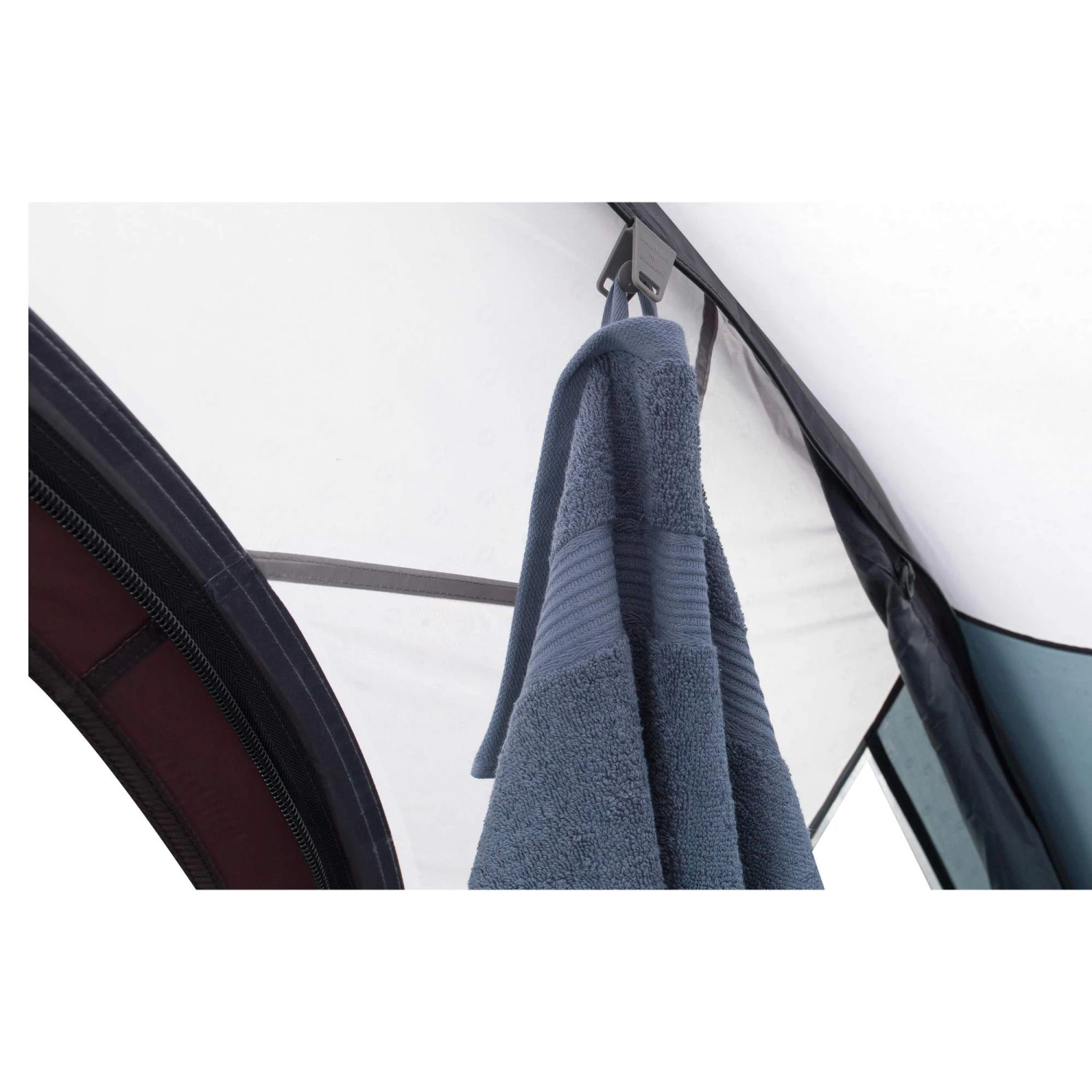 Das Tunnelzelt kann über den breiten Fronteingang betreten werden. Der eingenähte Zeltboden verhindert Zugluft, hält Krabbeltiere außerhalb des Zeltes und schützt vor nassen und schmutzigen Wiesen. In der Apsis ist ausreichend Platz, um einen Tisch und Stühle aufzustellen. Hier machen die kleinen Details den Unterschied. So können die getönten Fenster für mehr Privatsphäre abgedeckt werden und eine Kabeldurchführung erlaubt die unkomplizierte Verlegung eines Stromkabels oder einer Mehrfachsteckdose ins Zelt. In der Apsis stehen dir Netztaschen zum Verstauen von Kleinteilen und verschiedene Aufhängepunkte zur Verfügung. An diesen können Wäscheleinen gespannt oder Zeltlaternen aufgehängt werden.