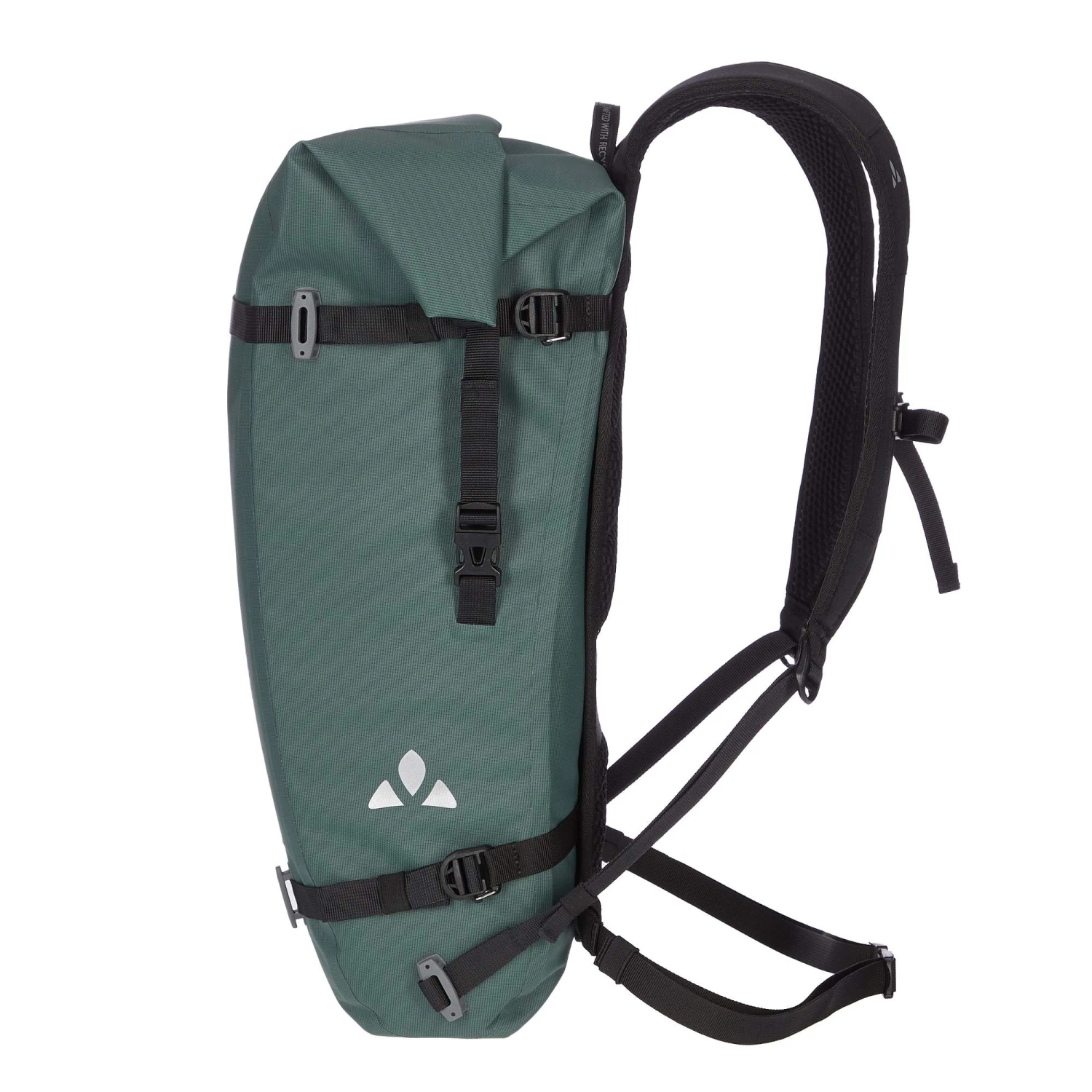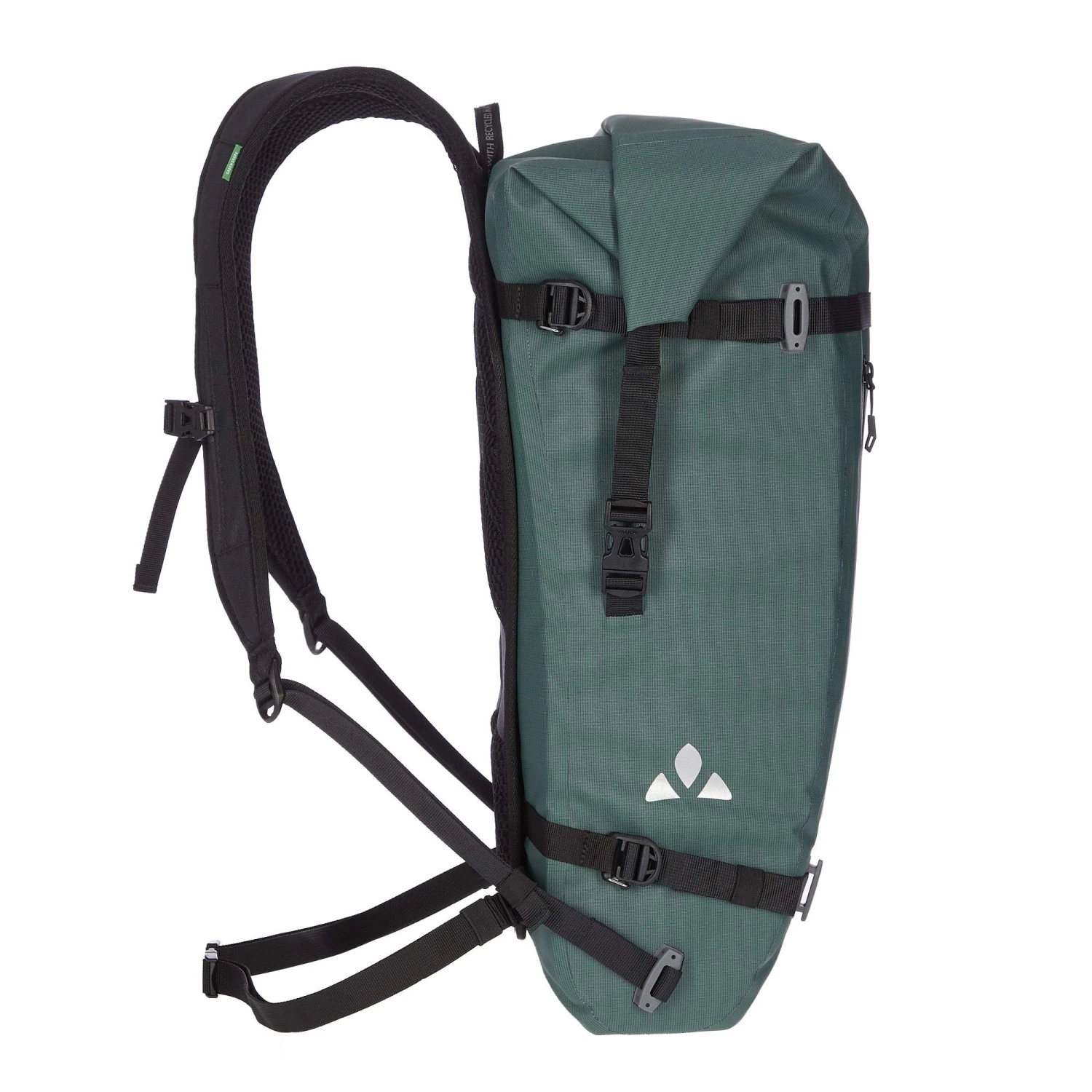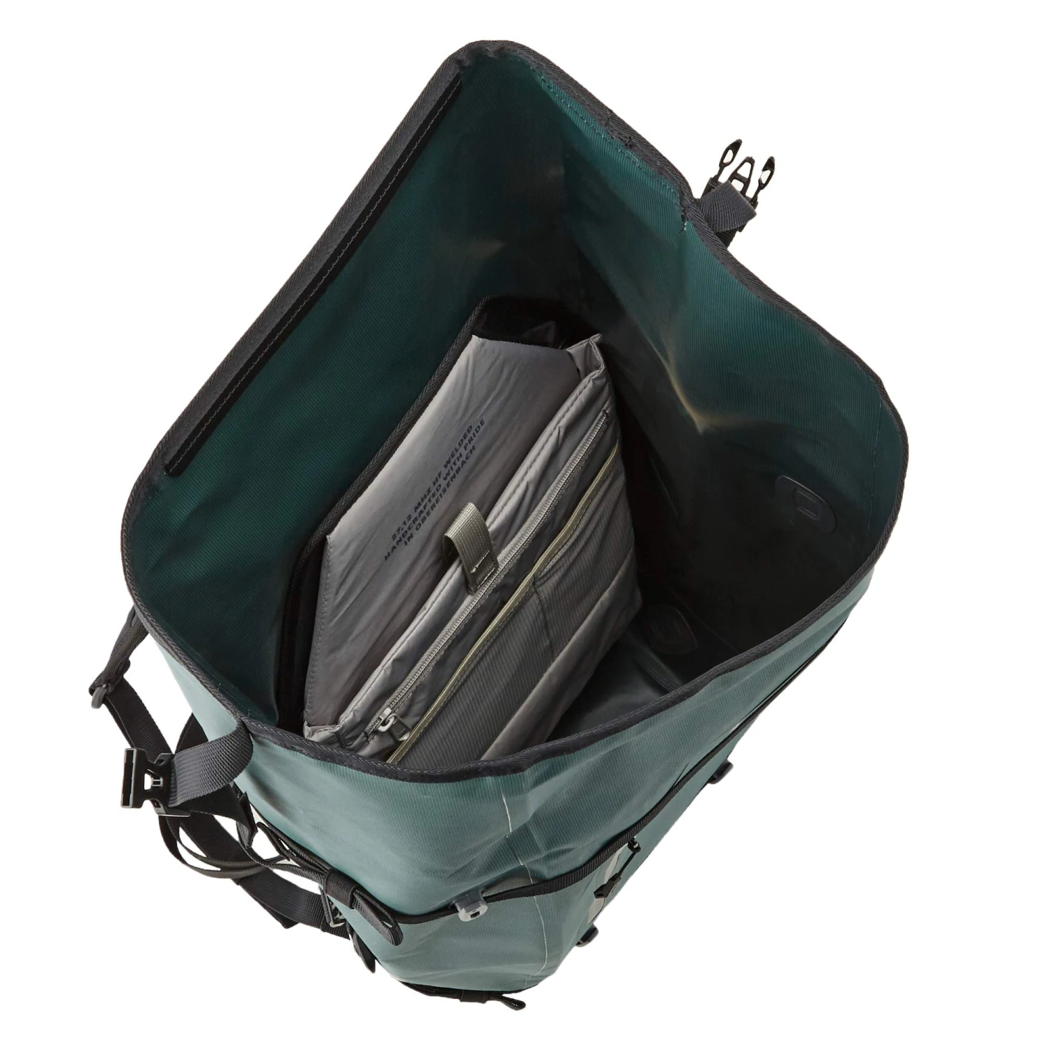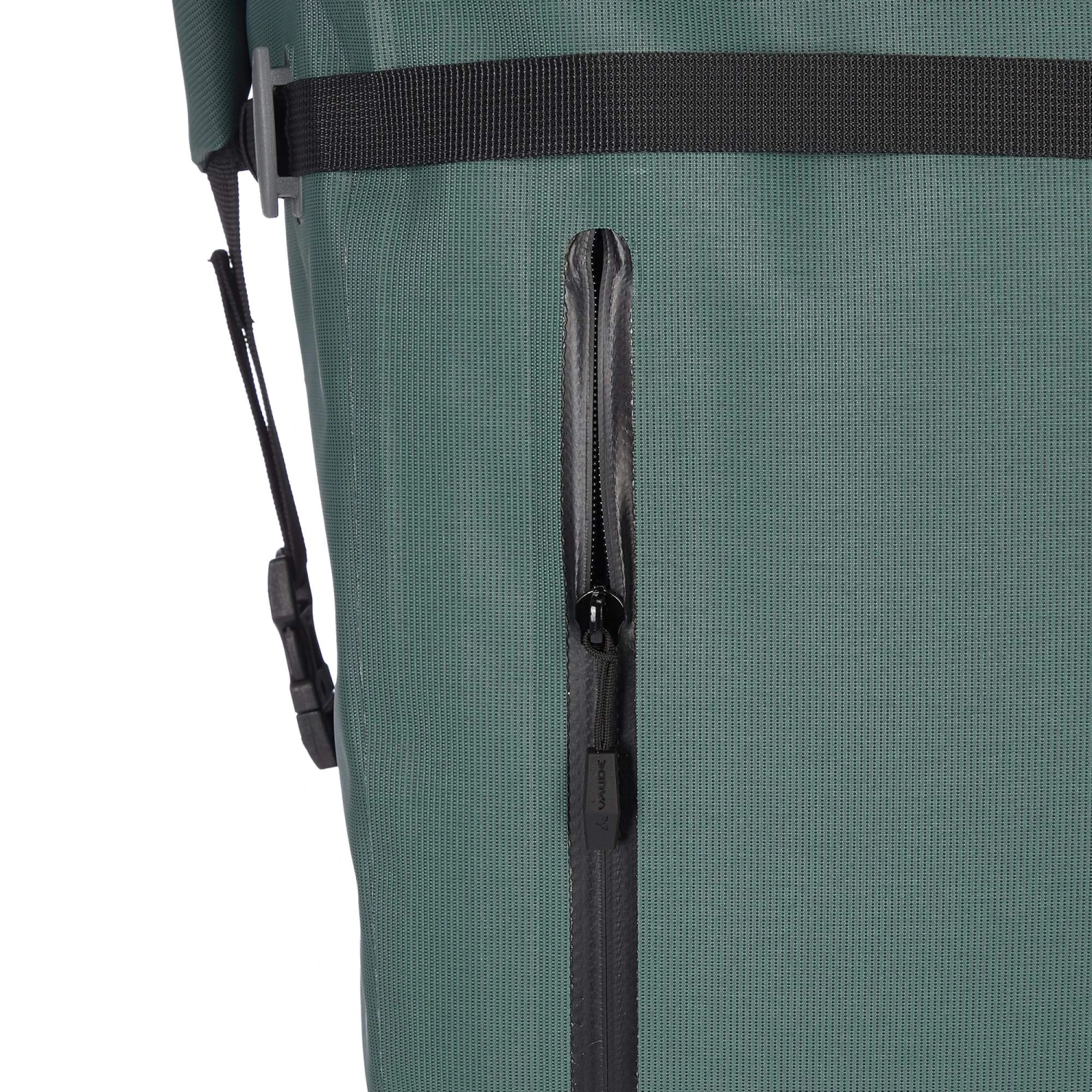 Der nachhaltig produzierte Tagesrucksack hat komplett verschweißte Nähte sowie einen praktischen Rollverschluss, der bei dreimaligem Rollen den Regen zuverlässig draußen hält.